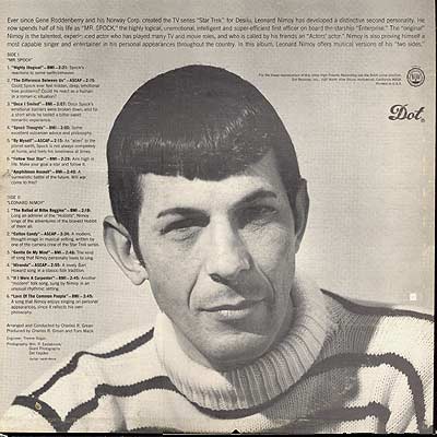 The show faces cancellation. DOT faces a multi-album contract. Time to remake and remodel!In his second venture, Nimoy goes deeper into Star Trek self-parody with "Highly Illogical" and "The Difference Between Us." Somewhere between the recording of the first and second albums, there was a novelty hit called "Desiderata" featuring a reading of the pithy pop-culture beatitude. Nimoy takes up the gauntlet with "Spock Thoughts" suggesting that a certain pointy-eared Vulcan spent at least some of his time reading posters in West Coast head shops.