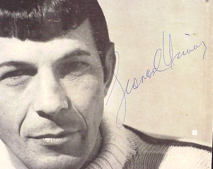 This is not altogether surprising, as those sales ladies with Leonard Nimoy's mother found out that day he was giving out autographs at Lechmere's in Cambridge. One of them, concerned because people were pressing other things besides Leonard Nimoy record albums into his hand for autographing, started to protest.