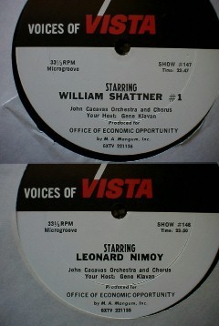 Voices of VISTA William Shatner and Leonard Nimoy Three radio shows on CD (originally distributed to radio stations on LPs) Back in 1968 Leonard Nimoy and William Shatner appeared on a radio series called "Voices of VISTA." Distributed free to radio stations, the series promoted "Volunteers In Service To America," an agency that placed volunteers in low income areas for a year. The radio shows were designed to explain what the VISTA mission was and how to apply for the program.